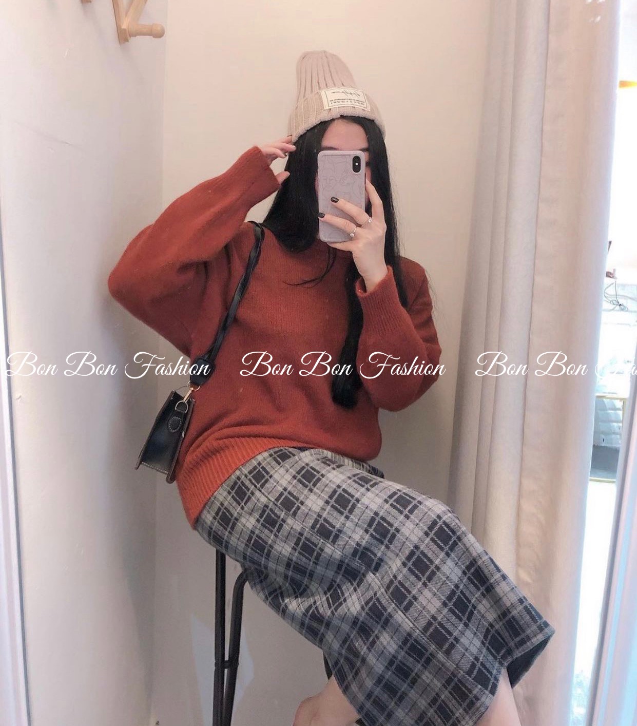 Chân váy nỉ cao cấp dáng dài họa tiết caro