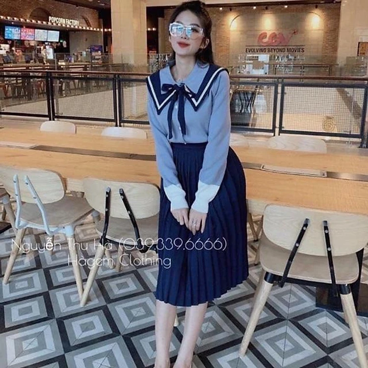 Sét áo len kèm chân váy 330k