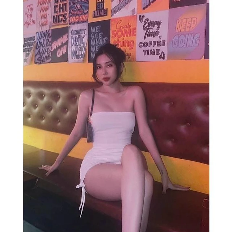 Set áo ống chân váy rút dây.