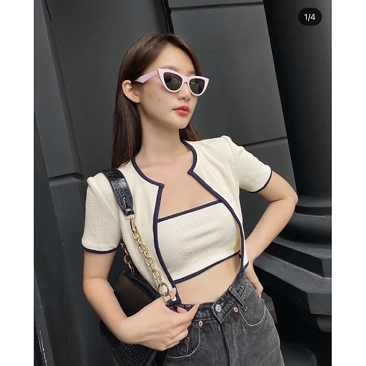Set áo ống kèm áo khoác carrdigan viền -S0NB8P