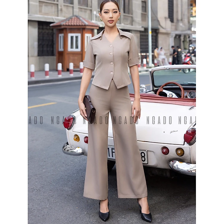 Set áo quần nâu sơ mi NGADO , set áo quần dài , set công sở, dạo phố