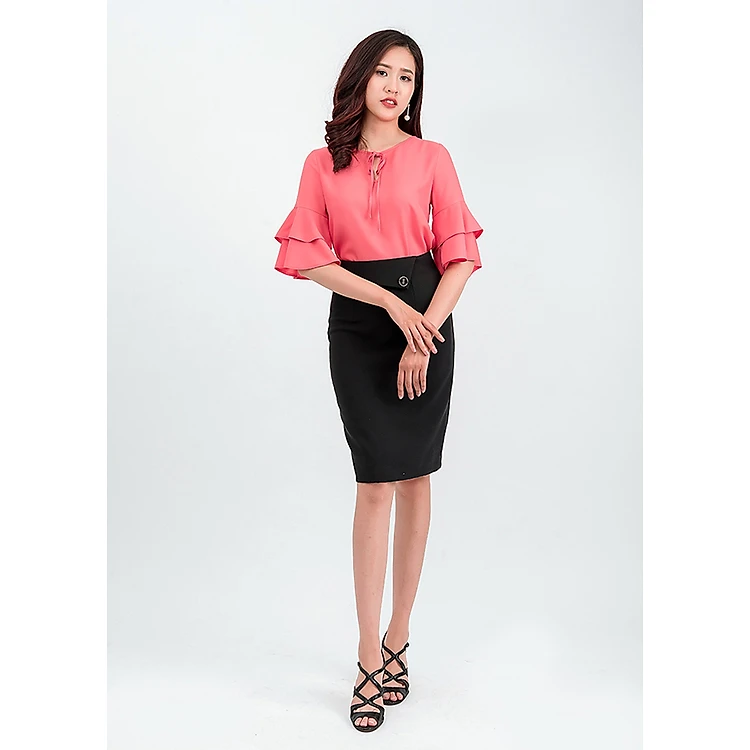 Một chiếc chân váy công sở dáng bút chì với thiết kế thanh lịch, trẻ trung mix cùng áo tay chuông duyên dáng thích hợp cho cô nàng công sở năng động.