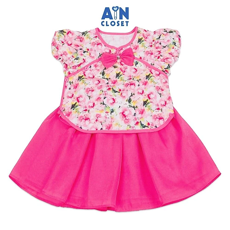 Set Áo váy bé gái Dân Quốc họa tiết hoa Mẫu Đơn Hồng Sen - AICDBGTNZY8O - AIN Closet