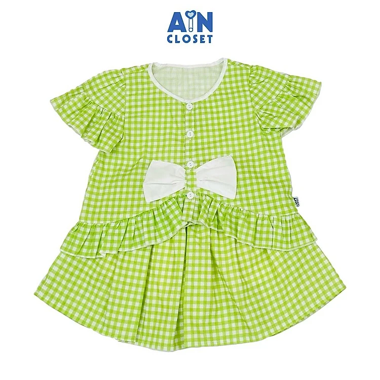 Set Áo Váy bé gái họa tiết Caro Nơ Xanh Cotton - AICDBGAKJYSV - AIN Closet