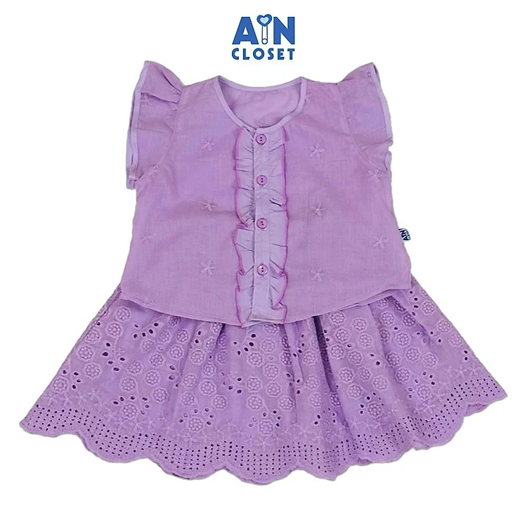 Set Áo Váy bé gái họa tiết Hoa Mai Tím Cotton thêu - AICDBGIKMELB - AIN Closet
