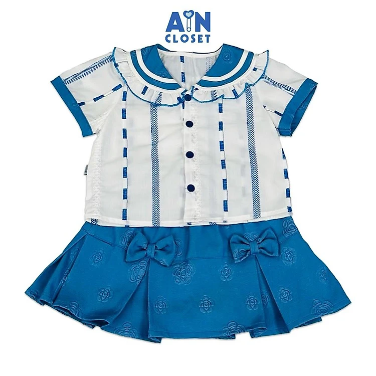 Set Áo Váy bé gái họa tiết Hoa Trà Xanh Cotton - AICDBGFMR9HO - AIN Closet