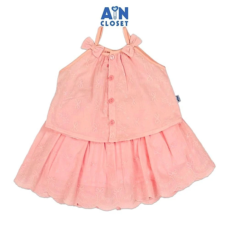 Set Áo Váy bé gái họa tiết Nơ Hồng Cotton thêu - AICDBGL3FN41 - AIN Closet