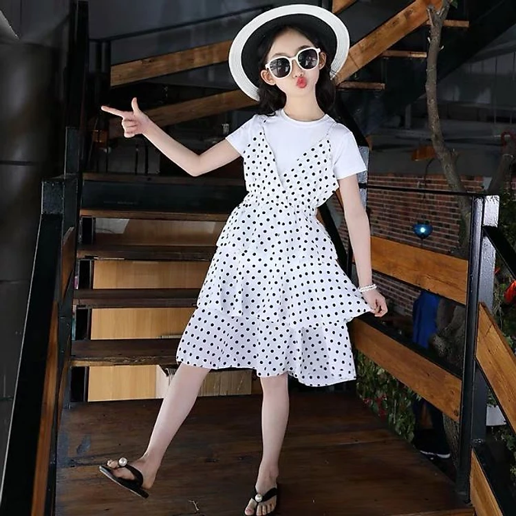 Set Áo Váy Chấm Bi Cao Cấp Bé Gái