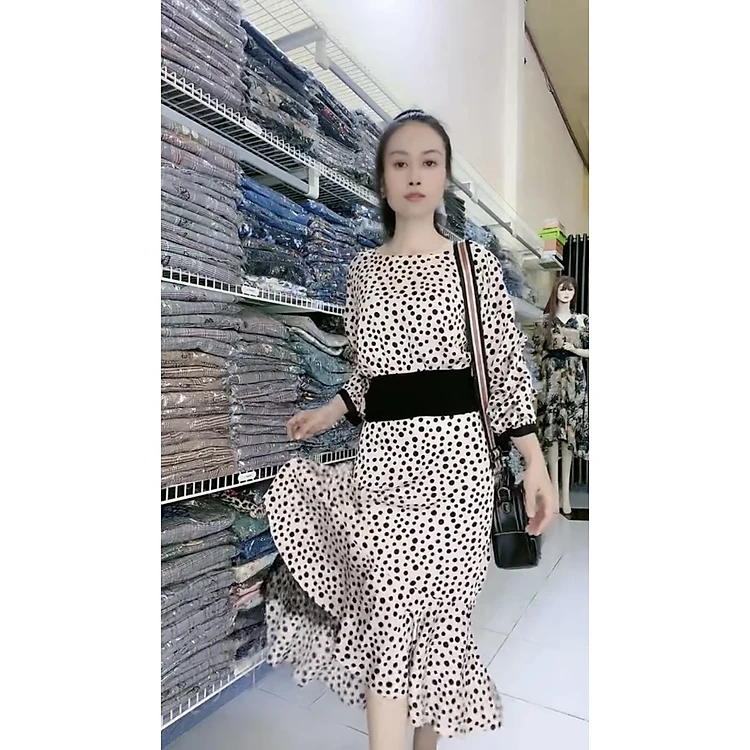 Set áo váy đuôi cá họa tiết chấm bi trẻ xinh.