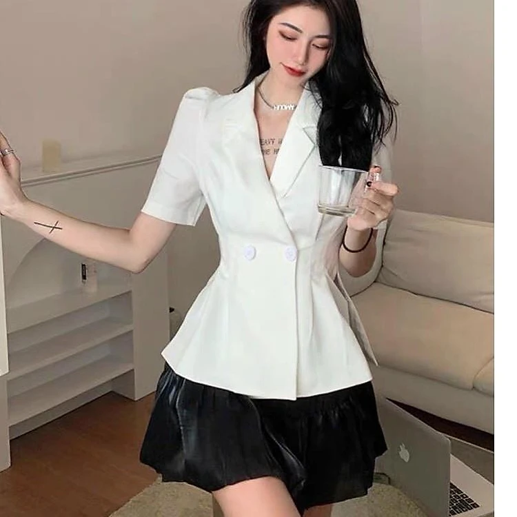 SET ÁO VEST + CHÂN VÁY XẾP LY ĐEN TRẮNG - ĐẦM CÔNG SỞ - GD168
