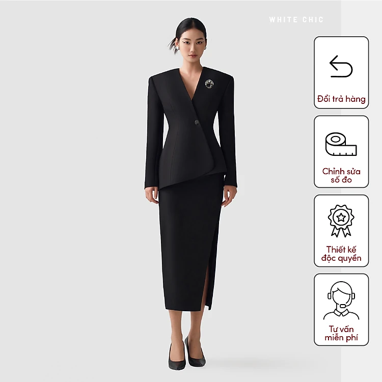 Set áo vest nữ dáng ôm tôn dáng & chân váy bút chì xẻ KELSEY thiết kế cao cấp WHITE CHIC