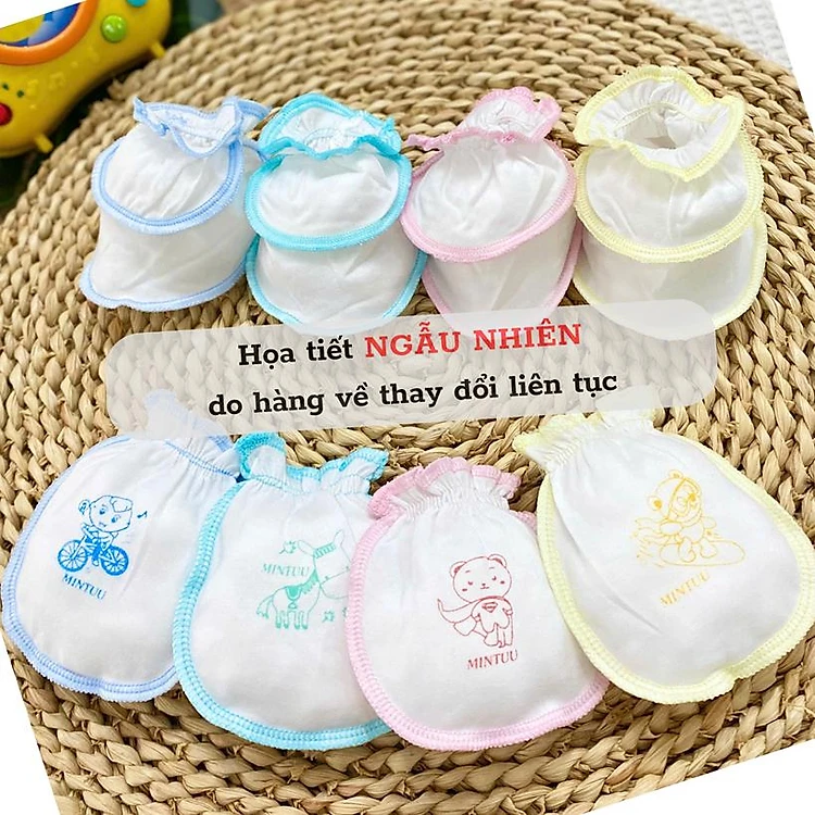 Set Bao tay bao chân cotton cho bé sơ sinh nhiều mẫu - Hiệu Mintuu