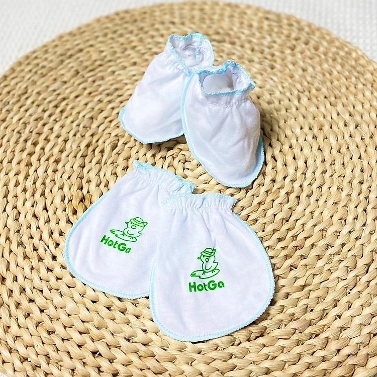 Set Bao Tay Bao Chân Sơ Sinh Cotton Viền Thun Mềm Cho Bé - HotGa