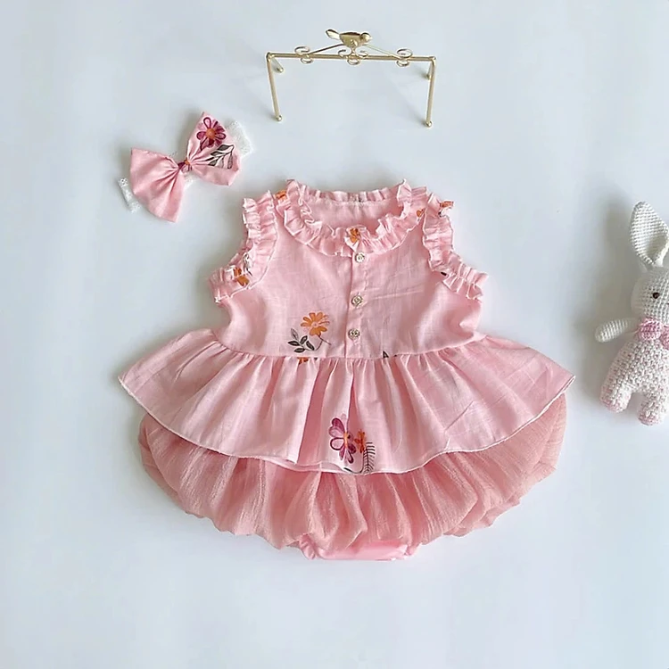Set Bộ Áo Sát Nách Viền Bèo Thêu Hoa Quần Đùi Bí Cho Bé Gái Sơ Sinh 1 2 Tuổi Từ 3-11kg Dành Cho Bé Gái