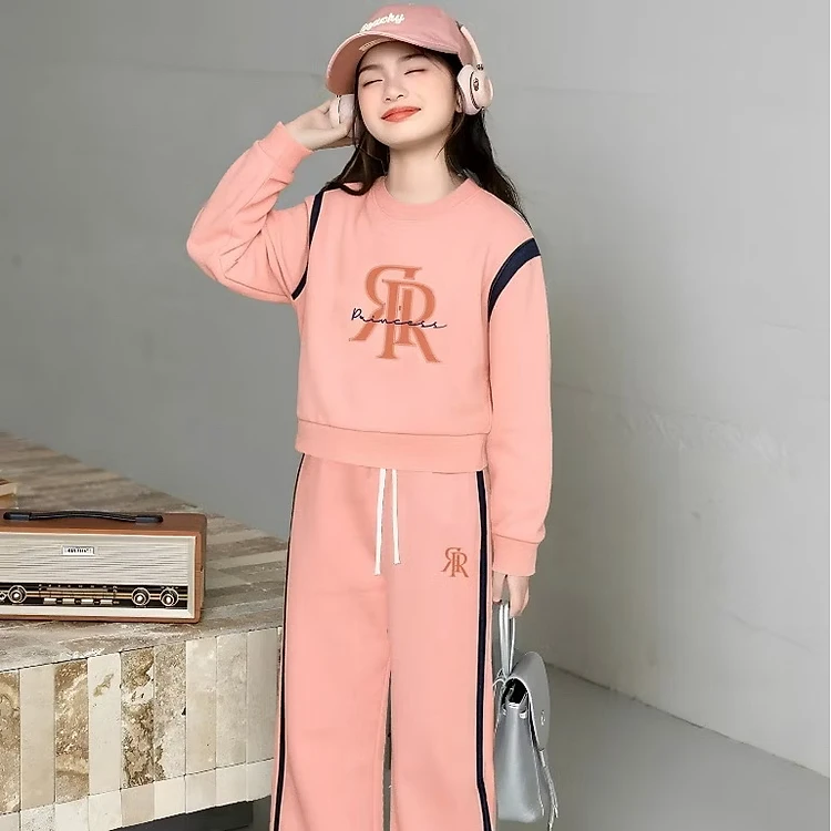Set Bộ Dài Tay Chất Da Cá – Set Thể Thao Form Rộng Cá Tính Từ 24-45 kg Dành Cho Bé Gái