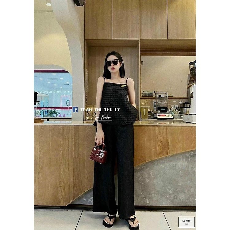 SET BỘ ĐI CHƠI, SET 2 MÓN ÁO BABYDOLL 2 DÂY DÁNG XÒE PHỐI QUẦN SUÔNG CỰC SANG