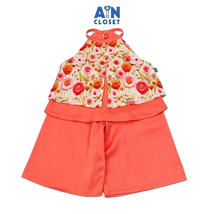 Set bộ quần áo Dài bé gái họa tiết Cúc Lụa Cam Cổ Yếm - AICDBGQBQ950 - AIN Closet
