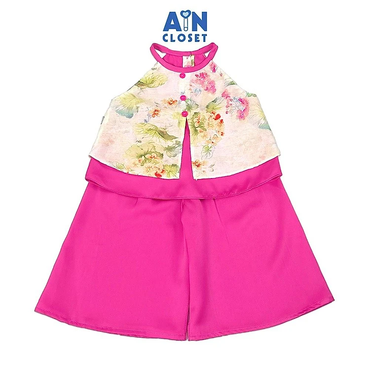 Set bộ quần áo Lửng bé gái họa tiết Sen Lụa Hồng Cổ Yếm - AICDBGOLU8XD - AIN Closet