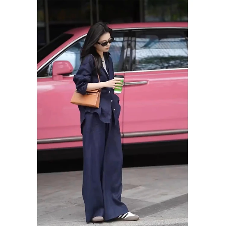Set bộ sơ mi dài tay kèm quần dài ống rộng thời trang trẻ trung, đa năng, đẹp