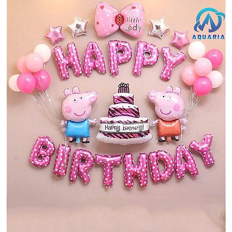 Sét Bong Bóng Trang Trí Sinh Nhật Peppa Pig Tặng Kèm Bơm Tay Siêu Đáng Yêu