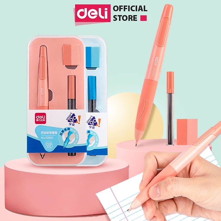 Set bút chì kim bấm ngòi kèm hộp ruột chì và tẩy cao cấp cho học sinh, văn phòng, tiện lợi, nhỏ gọn, màu sắc trẻ trung