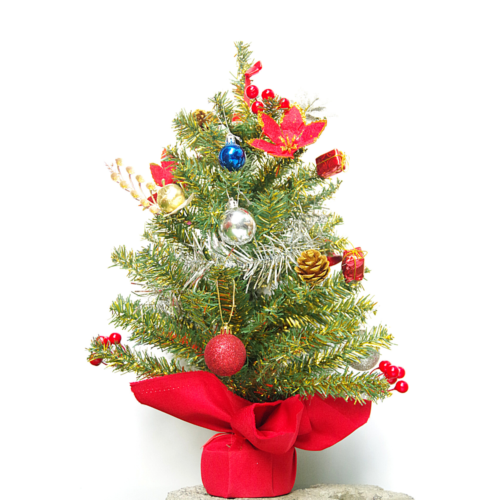 1 Cây Thông Xanh Ánh Vàng Để Bàn Loại Lớn 36x52cm và 8 phụ kiện trang trí xinh xắn