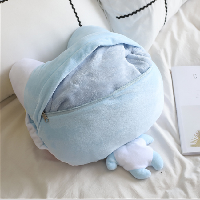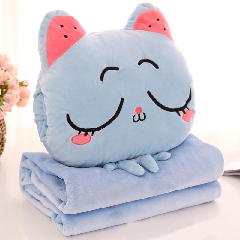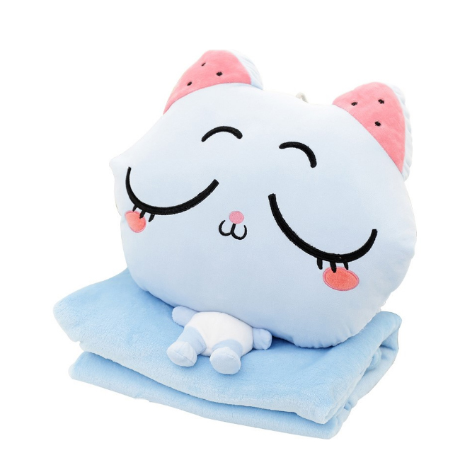 Gối được thiết kế xinh xắn với kiểu dáng ngộ nghĩnh dễ thương, có thể gối đầu hoặc dựa lưng êm ái. Chăn được thiết kế khéo léo có thể xếp gọn trong gối, khi dùng có thể lấy chăn ra dễ dàng với thao tác đơn giản