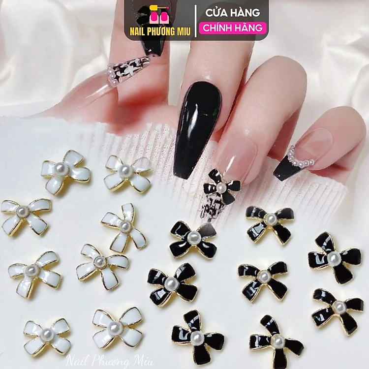 Set Charm Nơ Đen Trắng, Bướm Kim Loại Chống Han Gỉ, Trang Trí Móng Đẹp, Làm Nail Sang Trọng Nail Phương Miu Nữ Women