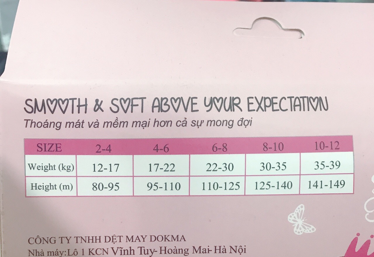 Bảng size để mẹ bé dễ lựa chọn