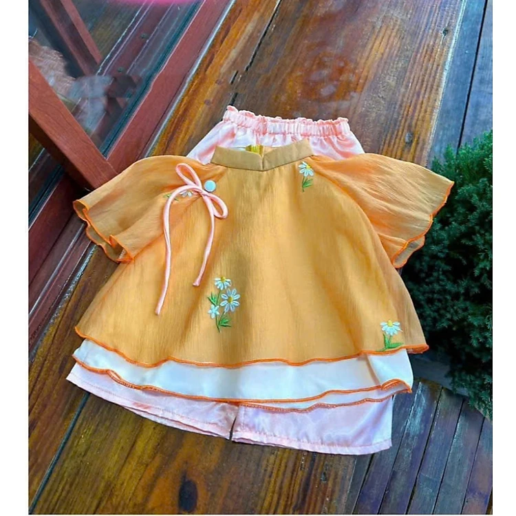 set đồ bà ba pháp phục cho bé gái mẫu Kim xuân diện lễ tết năm mới du xuân biểu diễn đẹp từ 12-40kg chất lụa mát