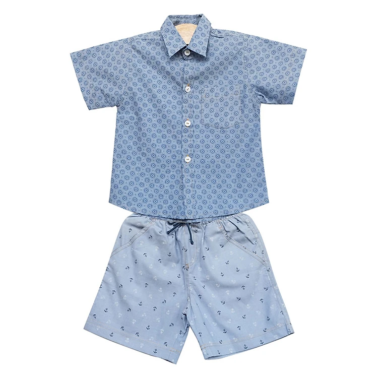 - Quần với kiểu dáng short ngắn, lưng thun không để lại vết hằn trên bụng bé, họa tiết mỏ neo nổi bật trên nền xanh, bề mặt vải mềm mại không gây kích ứng da.
