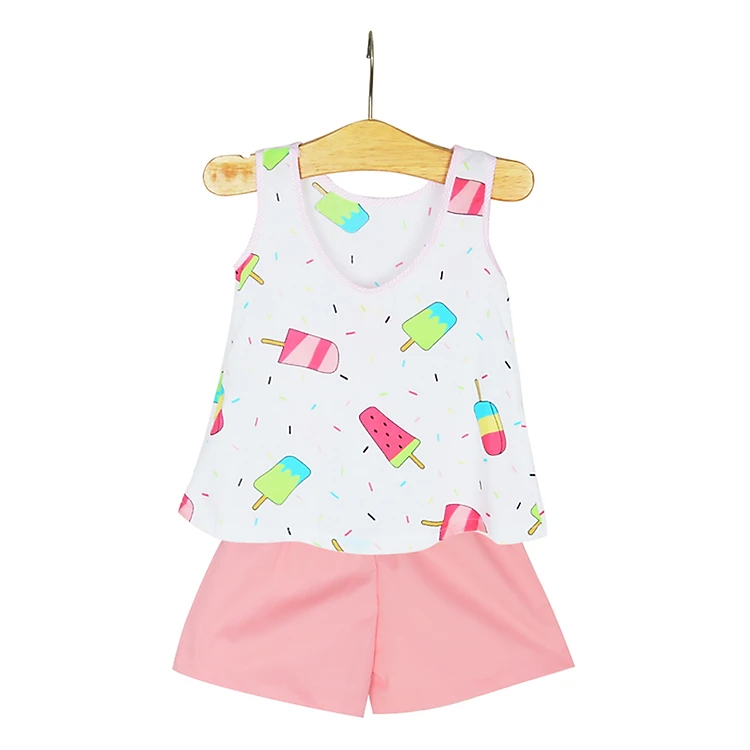 - Set Đồ Bộ In Hoa Que Kem Cuckeo HC 718 với thiết kế in họa tiết que kem nhiều màu trên nền vải màu trắng rất ngộ nghĩnh, cùng với việc phối màu thời trang sẽ giúp bé trở nên vô cùng đáng yêu.