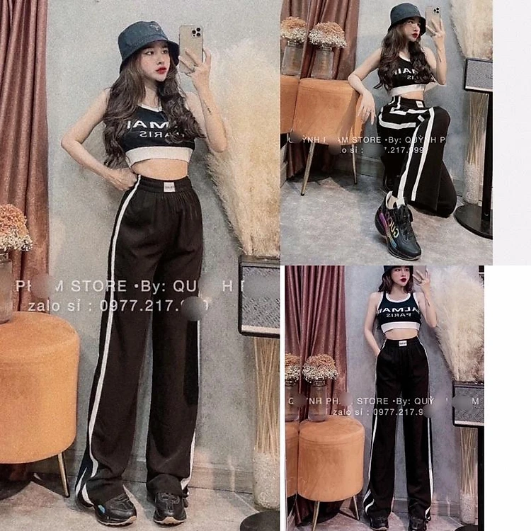 Set Đồ Bộ Thun Thể Thao Cá Tính Áo Croptop Quần Ống Rộng