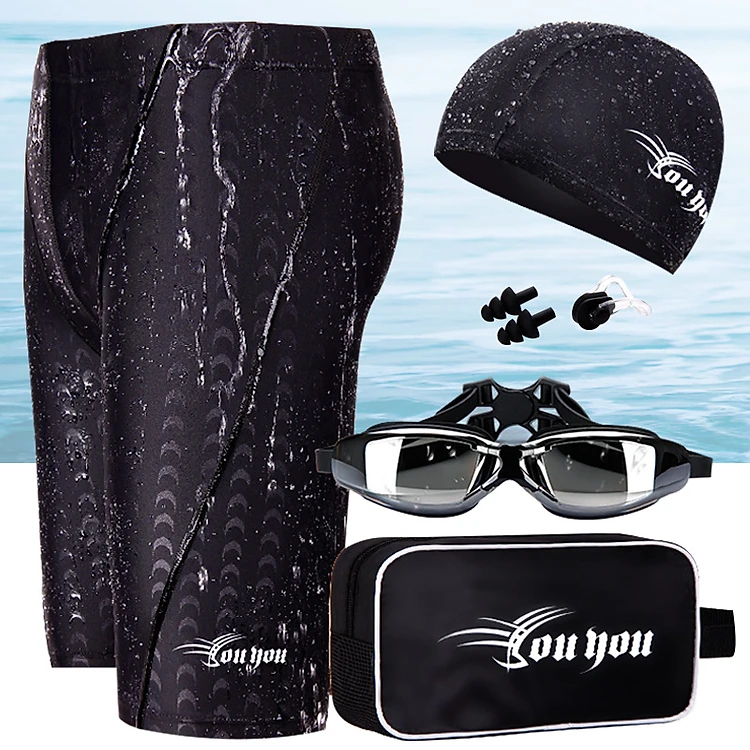 Set đồ bơi nam full 5 chi tiết kèm túi đựng, Quần bơi da cá + Kính bơi + Mũ + Bịt tai + Kẹp mũi, hàng xịn đẹp chuẩn | BN009