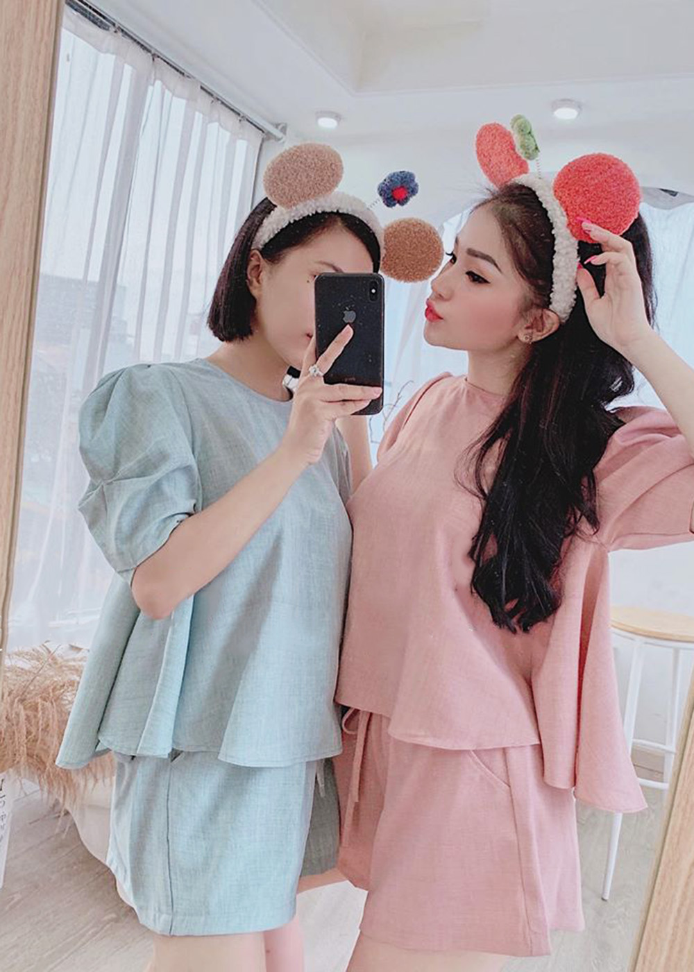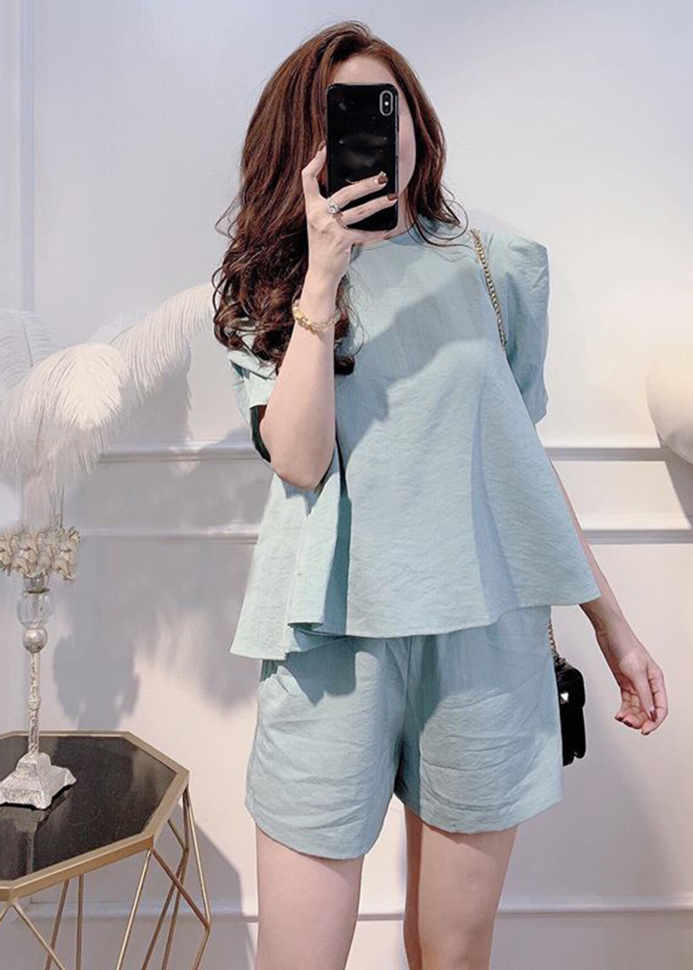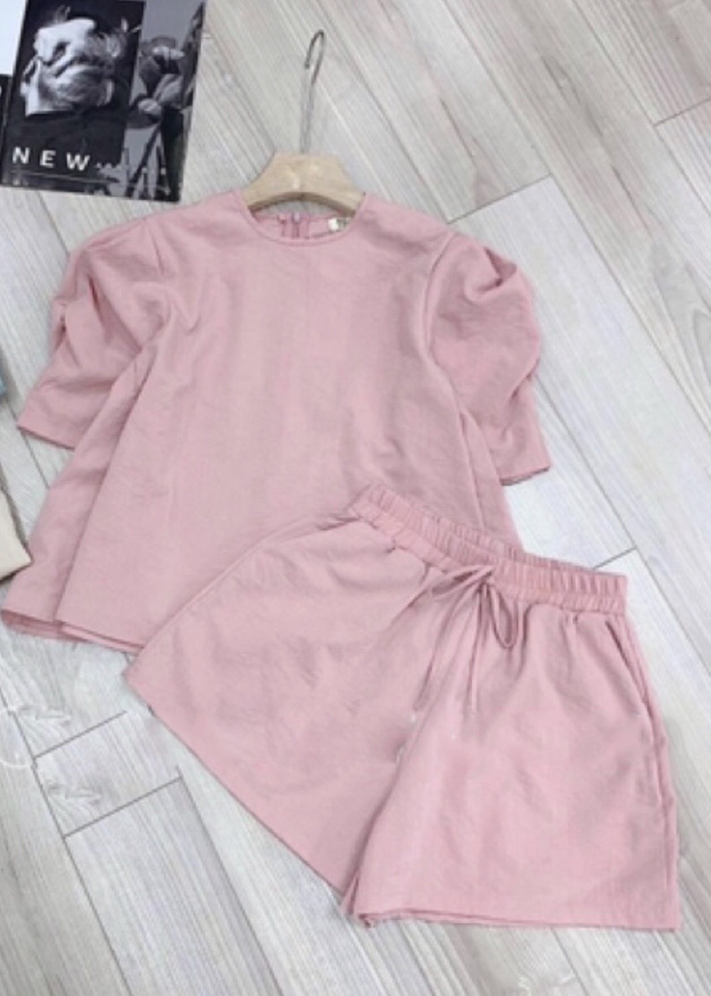 Set đồ gồm áo babydoll tay bồng và quần short cạp chun chất đũi đẹp, thoáng mát, phom rộng, trơn, đi chơi, ở nhà cực xinh
