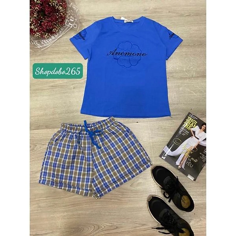 Set đồ nữ, đồ ngủ mặc nhà đùi thun phối sọc kaki BN 04 họa tiết dễ thương.