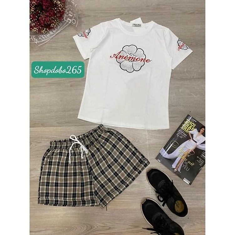 Set đồ nữ, đồ ngủ mặc nhà đùi thun phối sọc kaki BN 04 họa tiết dễ thương.
