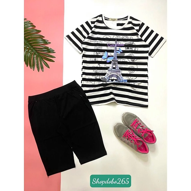 Set đồ nữ mặc nhà,bộ ngố vải thun thái áo phom rộng họa tiết dễ thương size 45-57kg.