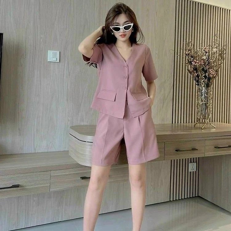 Set đồ nữ sang chảnh đi chơi đi biển Minh Phúc, bộ nữ áo tay ngắn cổ tim phối quần đùi phong cách thiết kế mới lạ