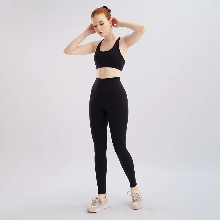Set đồ tập yoga gym Luxury Hibi Sports H145 4 dây đan VX, màu Đen và Tím Nhạt kèm mút ngực, vải cao cấp Hi Fabric