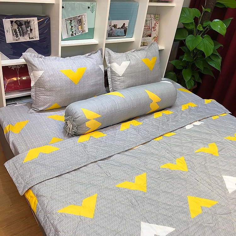 Set Ga Gối 3 Món Cotton Poly Hình Hoa Vê Vàng  MSP: CH26 + Tặng 1 Vỏ Gối Ôm