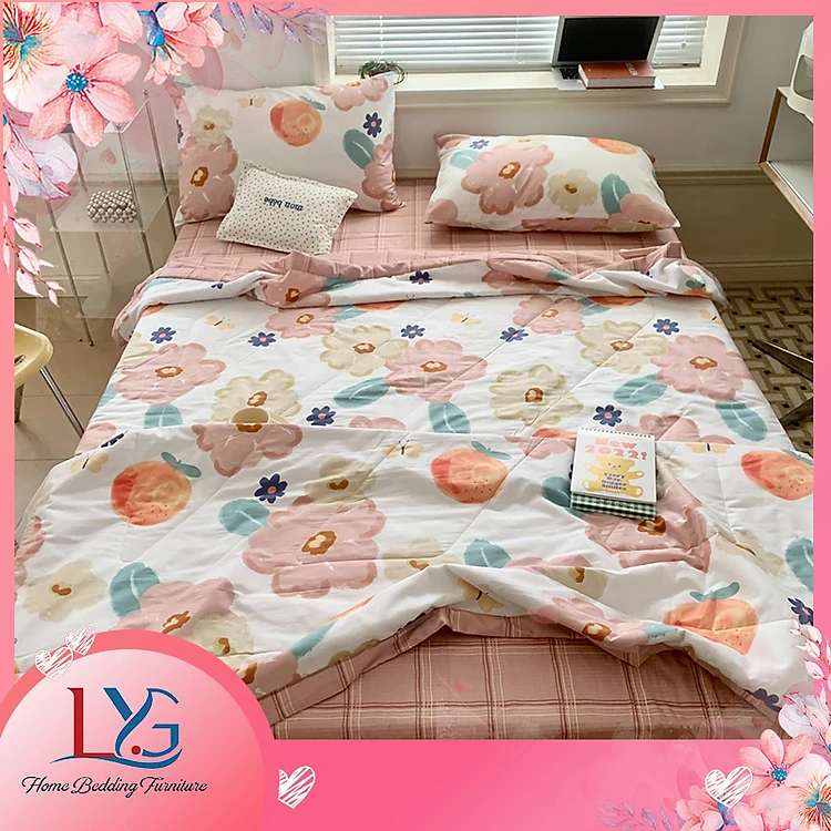 Set ga gối 4 món cotton chăn trần tơ tằm organic LYG tặng thêm 02 ruột gối bông Micro cao cấp