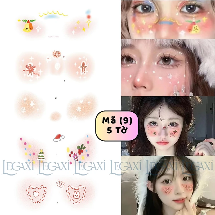 Set Hình Xăm Dán Má Hồng Tạm Thời Makeup Douyin Chủ Đề Mùa Đông, Tattoo Dán Mặt Chụp Ảnh Noel, Giáng Sinh, Năm Mới
