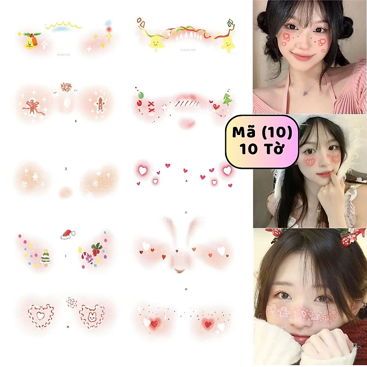 Set Hình Xăm Dán Má Hồng Tạm Thời Makeup Douyin Chủ Đề Mùa Đông, Tattoo Dán Mặt Chụp Ảnh Noel, Giáng Sinh, Năm Mới