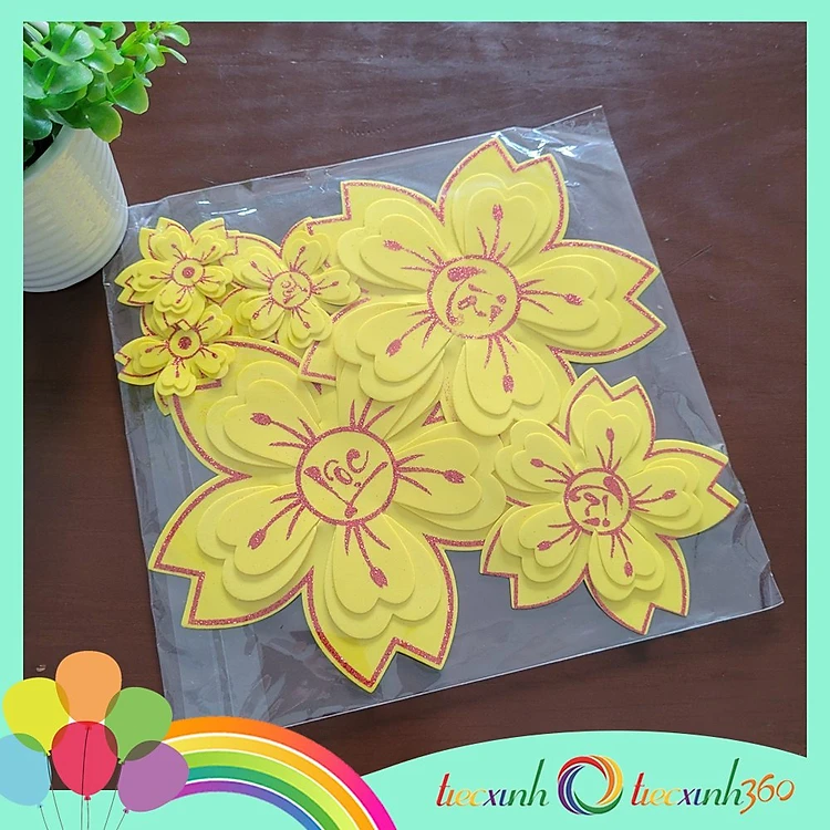 Set hoa mai mút dẻo trang trí Tết đủ size