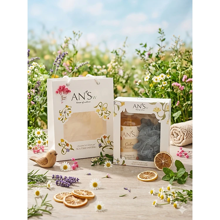 Set Hộp Quà Tặng Combo Gel Tắm kèm bông tắm AN'Sw Tặng 20/10, 20/11, Noel, Tết, Valentine, 8/3