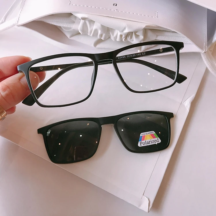 Set Kính Mắt vuông nhỏ unisex 2 Tròng 2in1