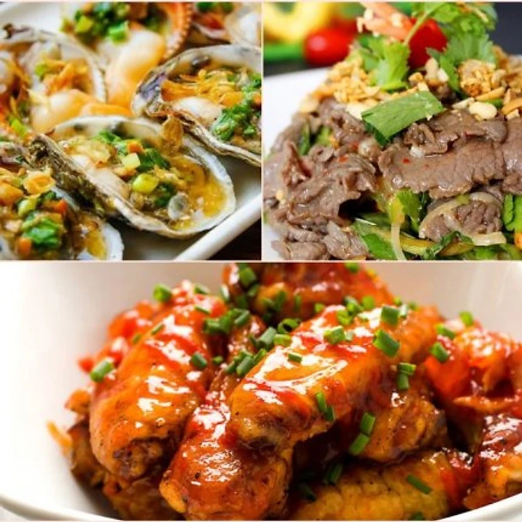 Ngoài ra, set ăn còn chiều lòng thực khách khó tính bằng rất nhiều món ngon đa dạng như: Gỏi bò bóp thấu thanh mát, Hàu nướng mỡ hành béo ngậy, Cánh gà xốt mật ong thơm lừng hay Cơm chiên cá bạc đậm đà…