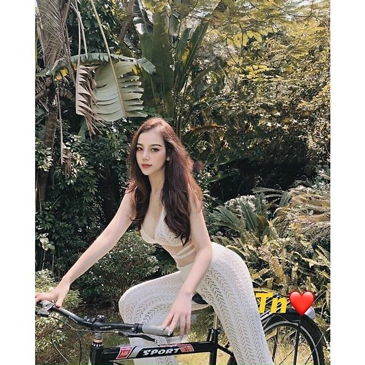 Set len móc đi biển quần dài, hàng Quảng châu duy nhất màu trắng