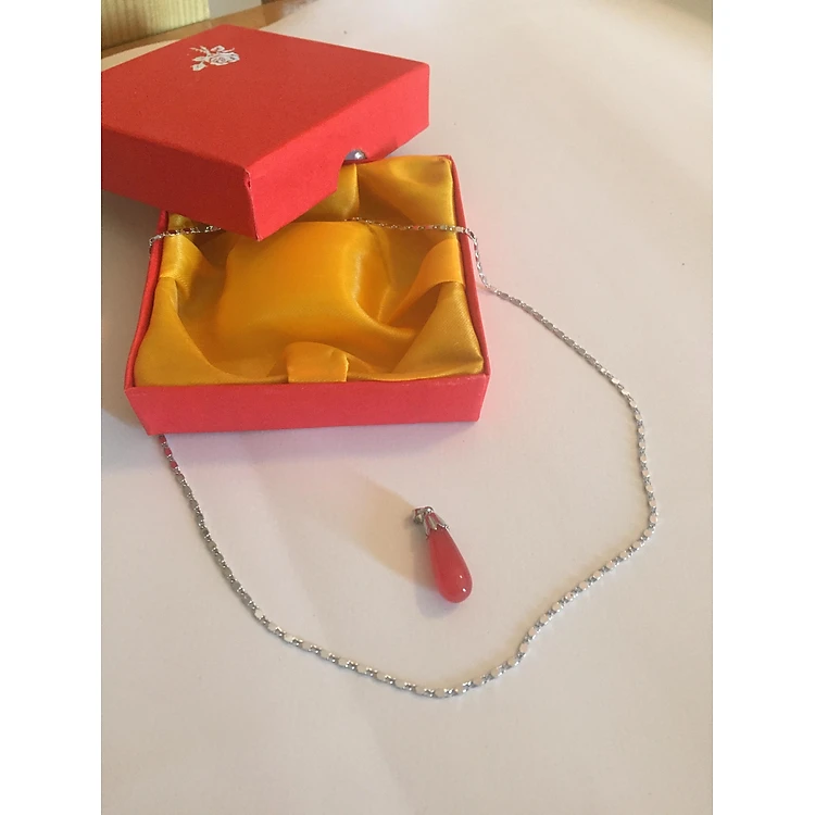 Set Mặt dây chuyền Hồng Ngọc Malaysia cao 2cm Hình Giọt nước rơi - Dây chuyền hợp kim mạ Titanium không rỉ không bay màu dài 45 cm và hộp đựng cung hỷ, Thiết kế đơn giản.